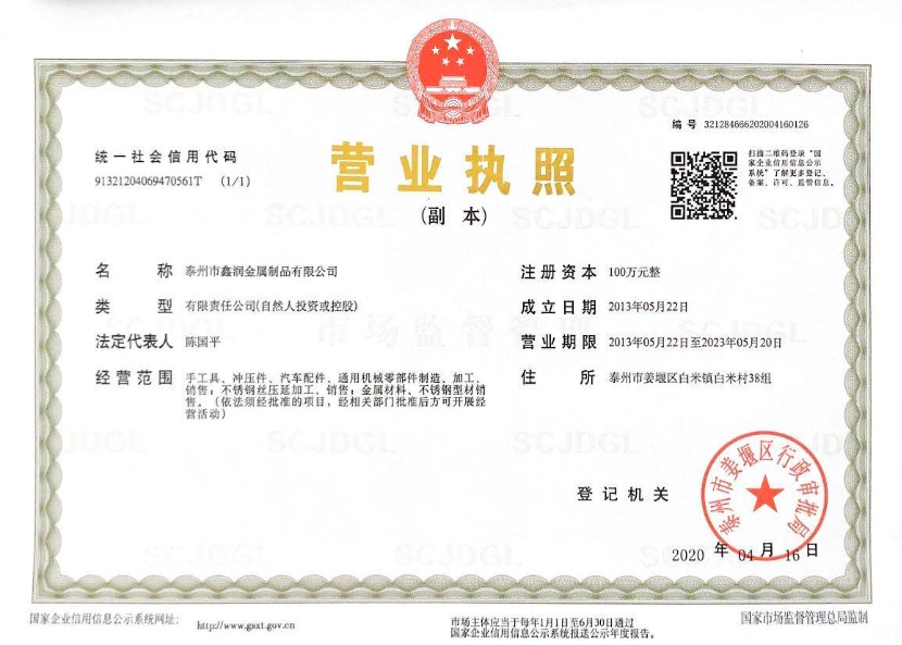 歡迎訪問泰州市鑫潤金屬制品有限公司網站!